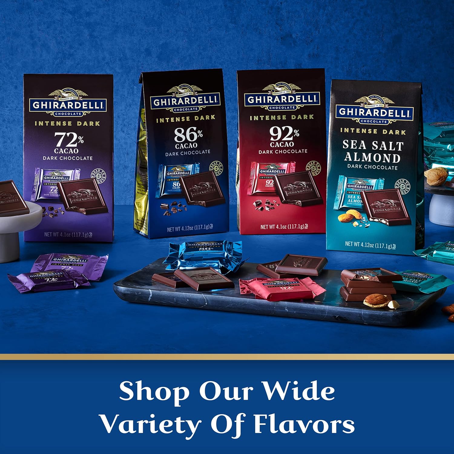 - Six (6) 4.12 oz bags of GHIRARDELLI Intense Dark Chocolate SQUARES, 86% Cacao