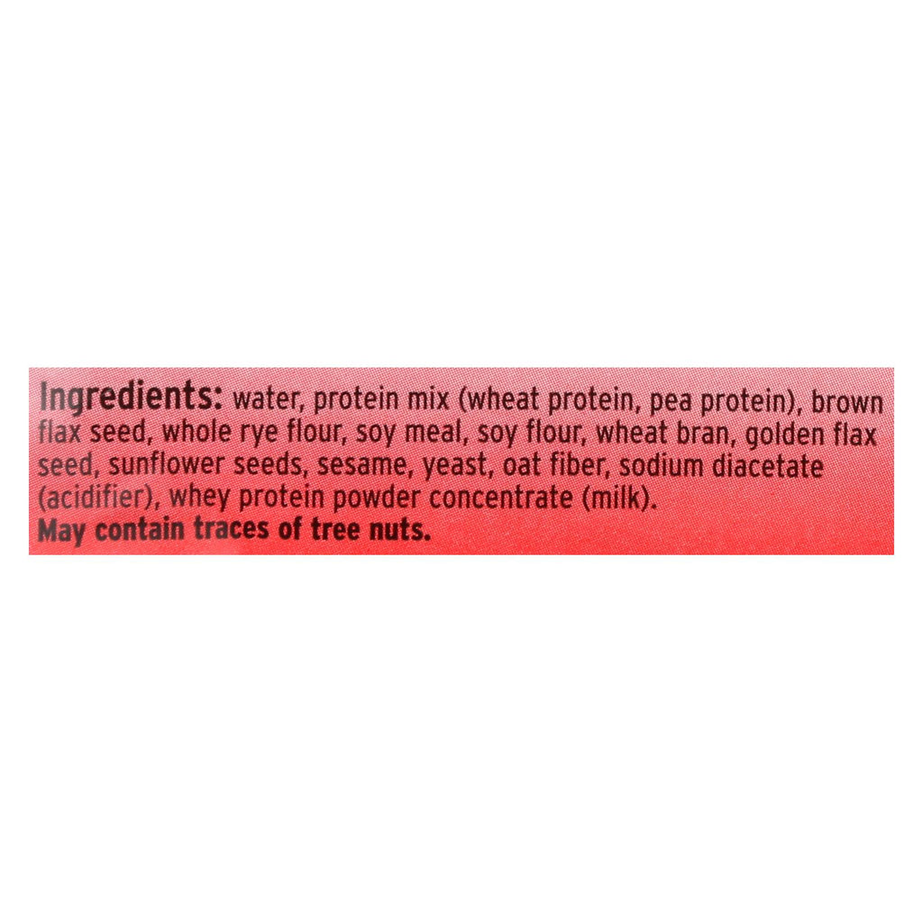 ingredients : water;protein-mix (wheat protein, pea protein);whole rye flour;brown flaxseed;soy meal;soy flour;wheat bran;golden flaxseed;sunflower seeds;sesame seeds;oat fiber;salt;yeast;whey powder (milk);rye flour;sodium diacetate