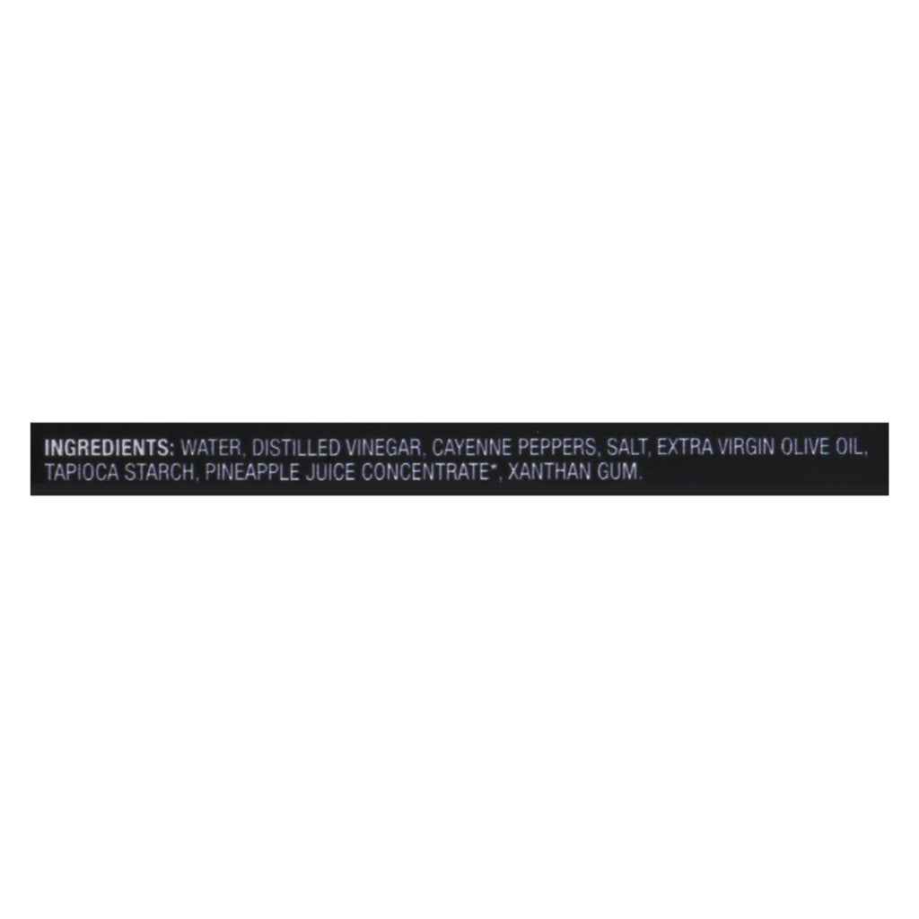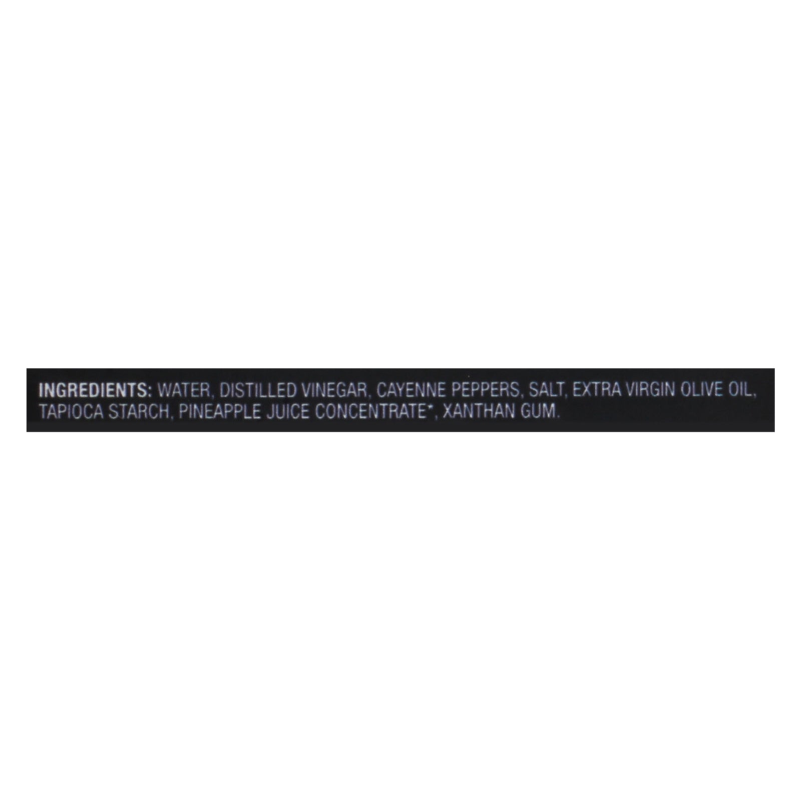 ingredients : water;distilled vinegar;cayenne peppers;salt;extra virgin olive oil;tapioca starch;pineapple juice concentrate;xanthan gum