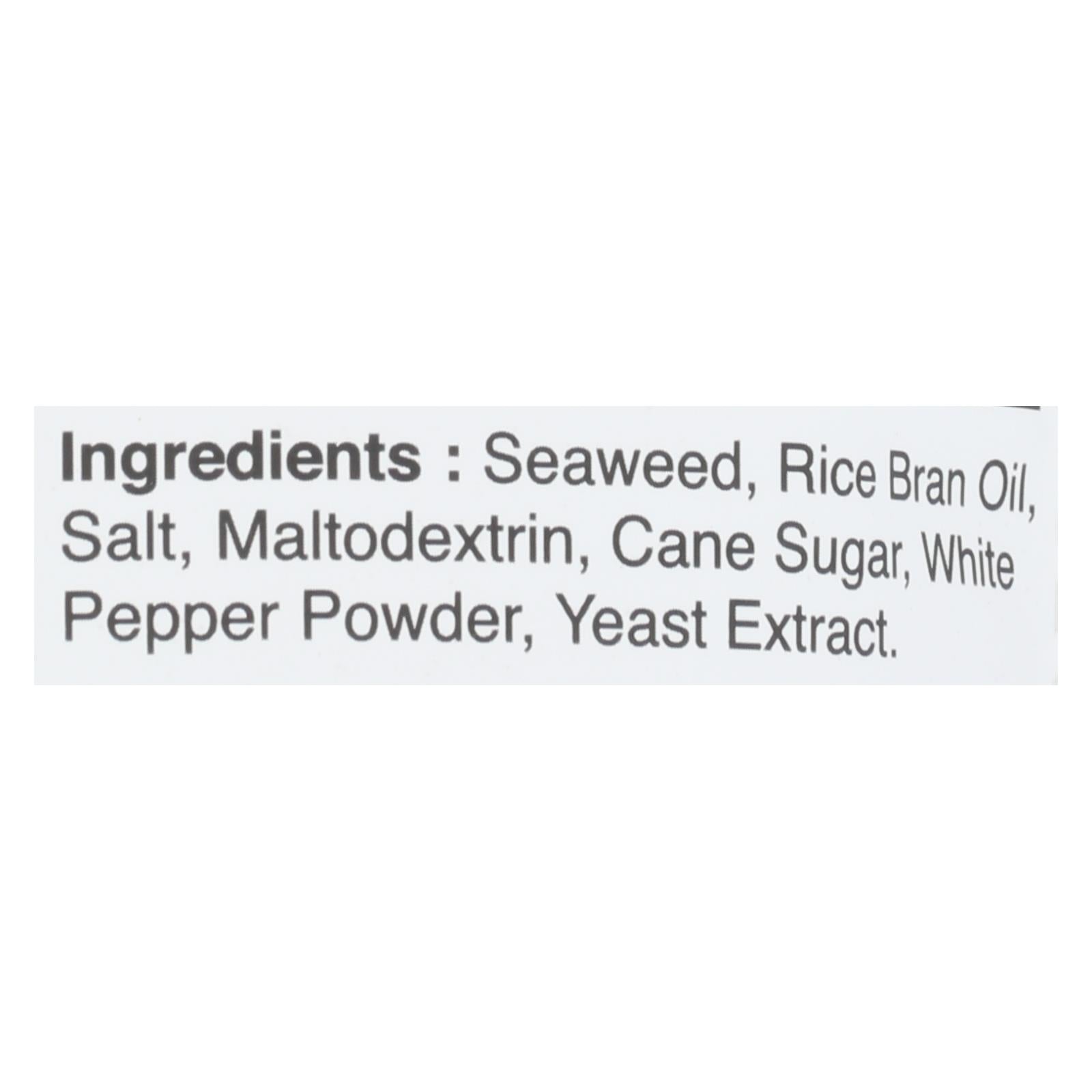 ingredients : seaweed;rice bran oil;salt;maltodextrin;cane sugar;white pepper powder;yeast extract